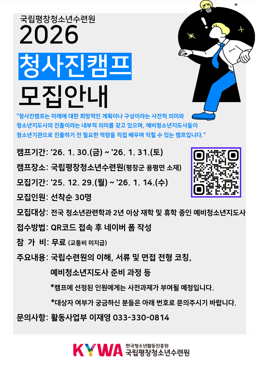 국립평창청소년수련원에서 청사진캠프 참가자를 모집합니다.