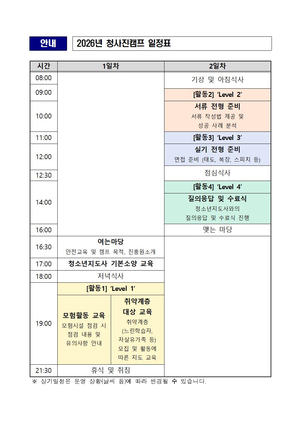 □ 캠프기간: '26.1.30.(금)~'26.1.31.(토)